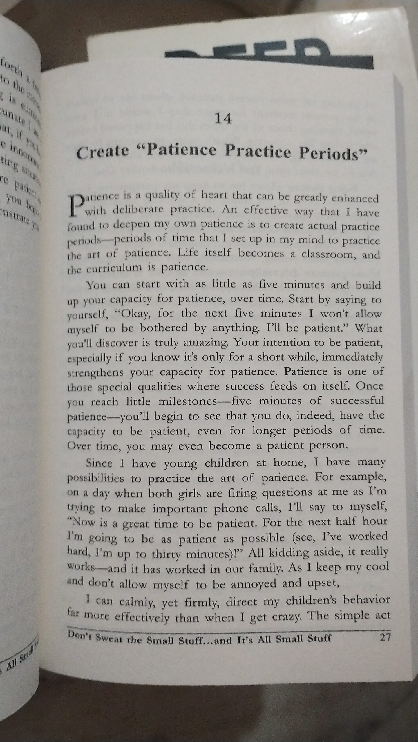 Don’t Sweat the Small Stuff… and it’s all small stuff is a book that shows you how to keep from letting the little things in life drive you crazy. In thoughtful and insightful language, author Richard Carlson reveals ways to calm down in the midst of your incredibly hurried, stress-filled life. You can learn to put things in perspective by making the small daily changes he suggests,including advice such as “Think of your problems as potential teachers”; “Remember that when you die, your ‘In’ box won’t be empty”; and “Do one thing at a time.” You should also try to live in the present moment, let others have the glory at times, and lower your tolerance to stress. You can write down your most stubborn positions and see if you can soften them, learn to trust your intuitions, and live each day as if it might be your last. With gentle, supportive suggestions, Dr.Carlson reveals ways to make your actions more peaceful and caring, with the added benefit of making your life more calm and stress-free.